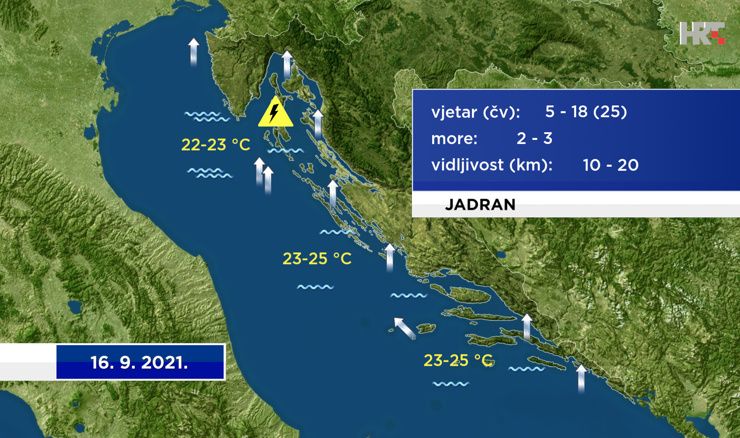 I na Jadranu će vikend kvariti nestabilno vrijeme, praćeno prolazno pojačanim vjetrom te čestim i lokalno izraženim pljuskovima s grmljavinom, a moguće je i grmljavinsko nevrijeme. No, još u petak u Dalmaciji bi oborina mogla biti rijetka. Dnevna temperatura niža, osobito na sjevernom Jadranu.
