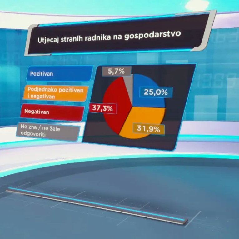 Najnovije istraživanje HRejtinga, provedeno za HRT, otkriva kako hrvatski građani gledaju na strance koji rade u Hrvatskoj. Agencija Promocija plus provela je anketu od 16. do 18. veljače na uzorku od 1000 ispitanika, a statistička pogreška iznosi +/-3,53 posto uz razinu pouzdanosti od 95 posto.