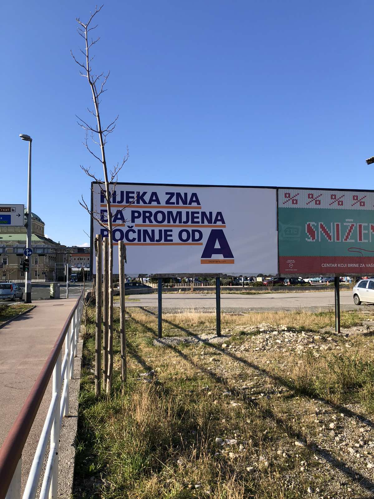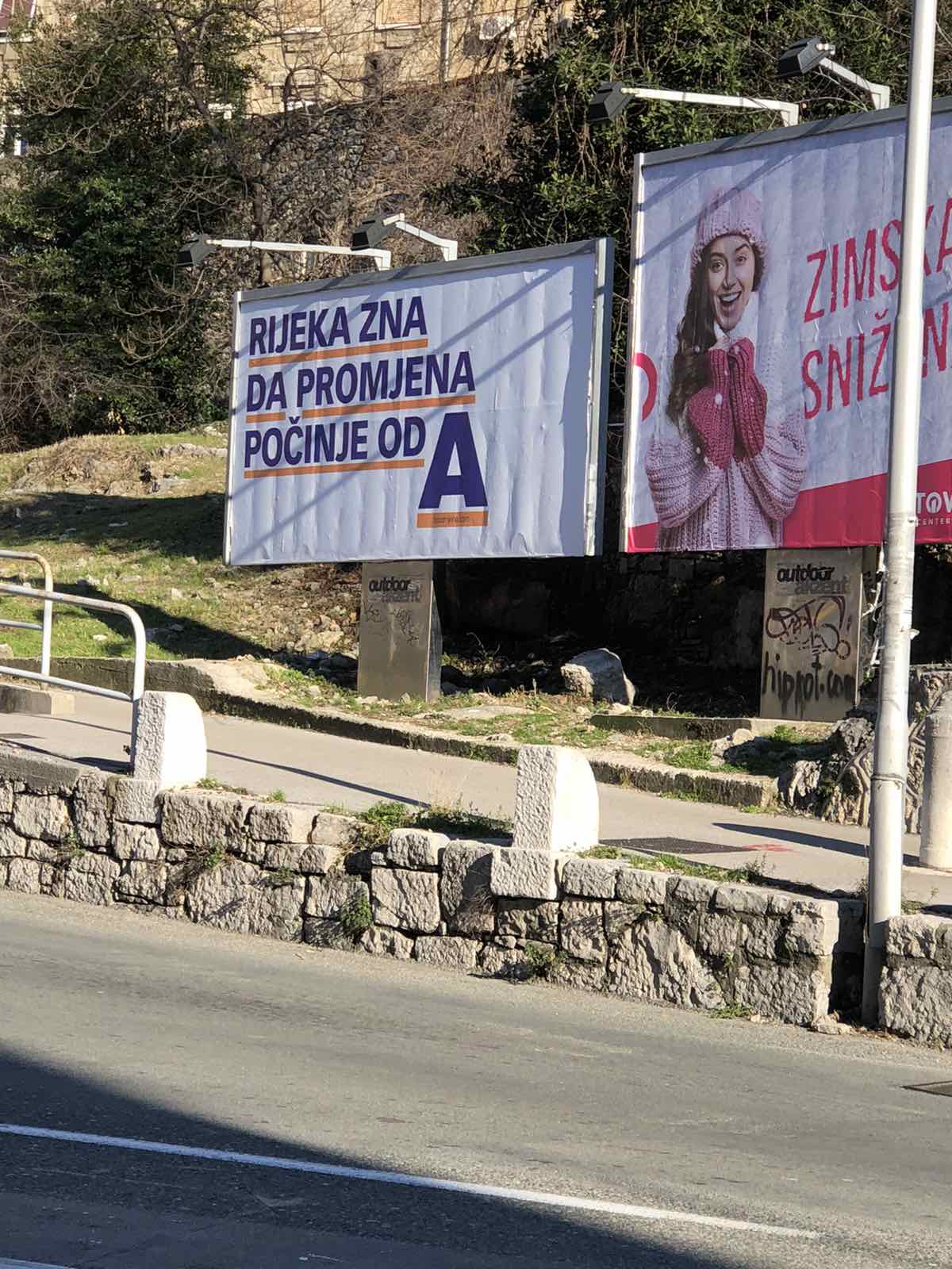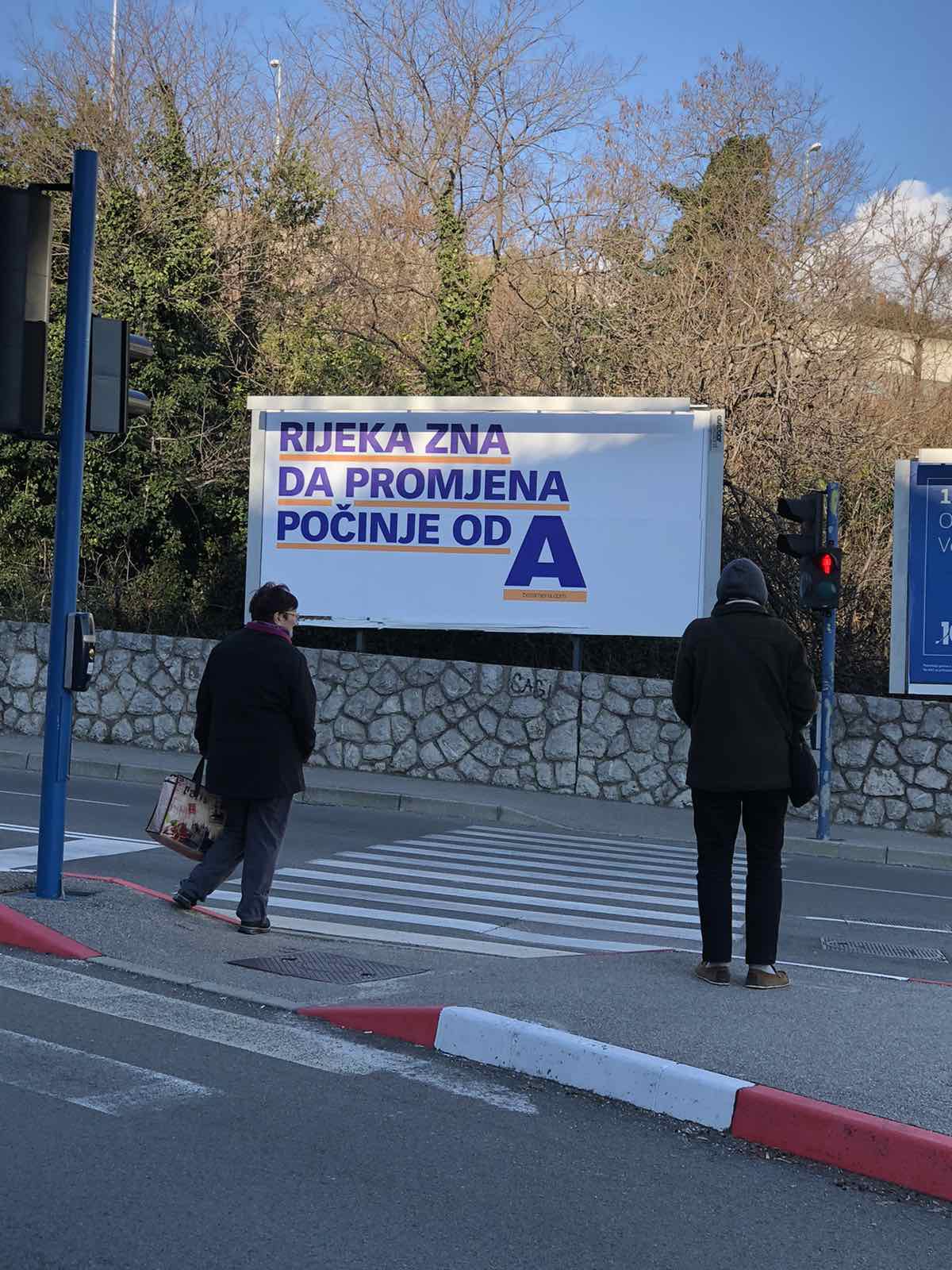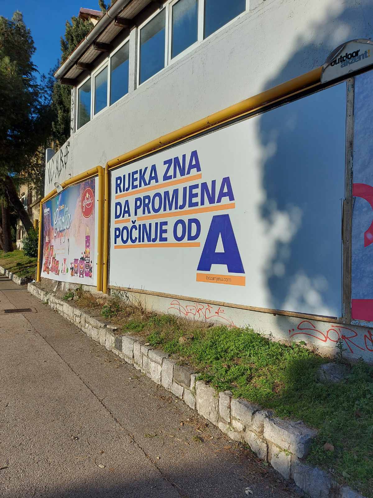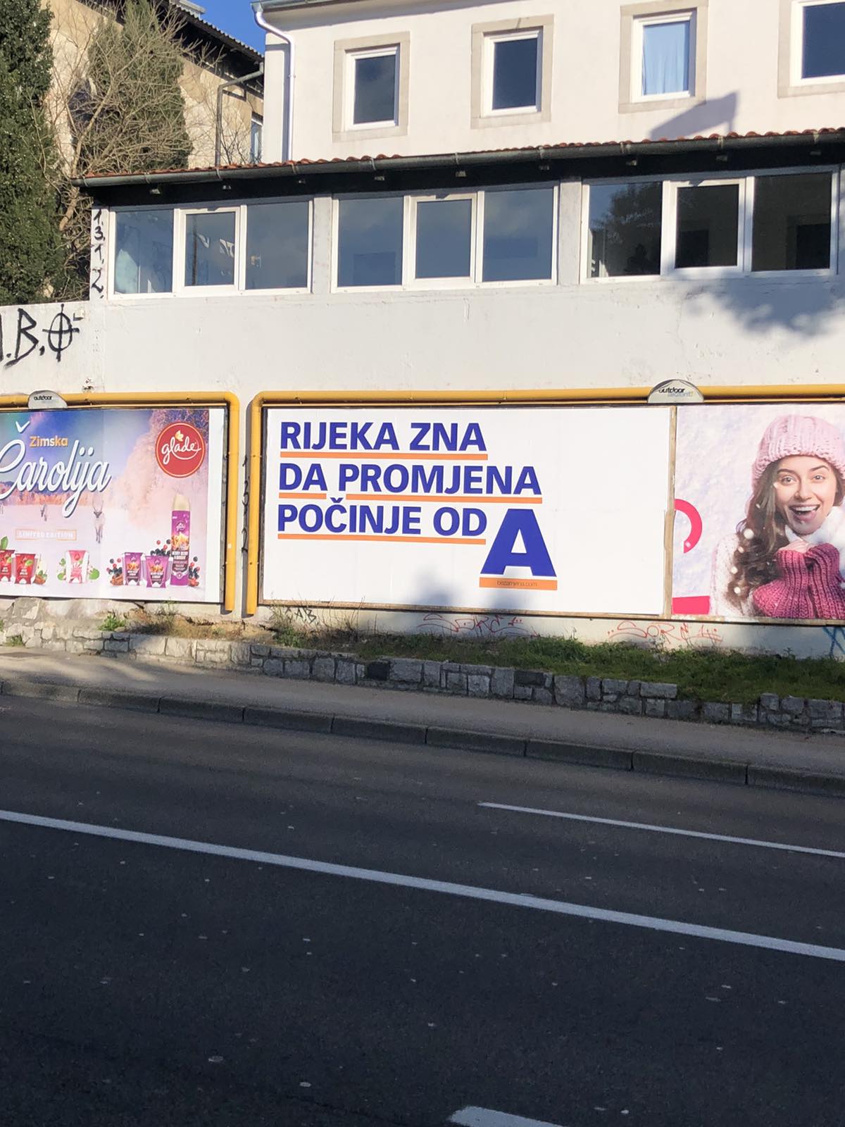Plakati s porukom “Rijeka zna da promjena počinje od A” pojavili su se prije nekoliko dana na desetak lokacija po gradu Rijeci. Što to točno Rijeka zna i o kakvoj je promjeni riječ? Čini se da je tu ključna riječ promjena, ali nije jasno krije li se iza ove poruke kampanja za neki novi proizvod koji će iz temelja promijeniti potrošačke navike Riječanki i Riječana ili je u pozadini ipak nešto drugo. Pokušajte odgonetnuti!