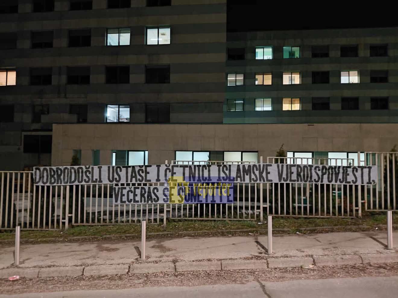 Situacija je dodatno eskalirala pojavljivanjem uvredljivog transparenta ispred bolnice Tuzla, usmjerenog prema povrijeđenim navijačima: