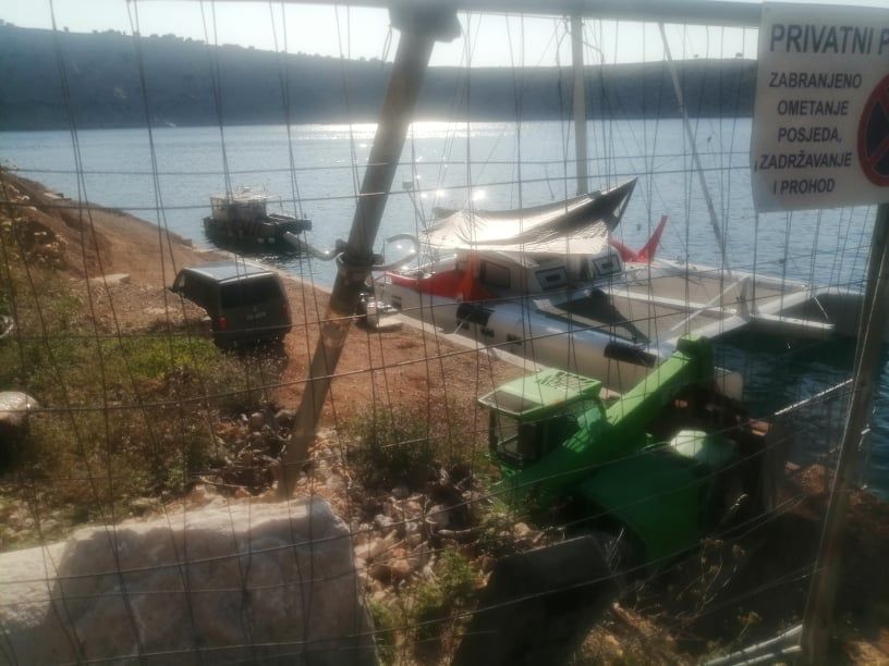 Prema našim saznanjima riječ je privatnim parcelama uz samo more koje su u vlasništvu stranog državljana i koji je prije nekoliko godina izvršio i određene radnje oko popravljanja obalnog zida i uređenja platoa uz more. Za navedeno imao je odgovarajuće dozvole, barem po saznanjima koje su tada bila dostupna od Lučke kapetnije.