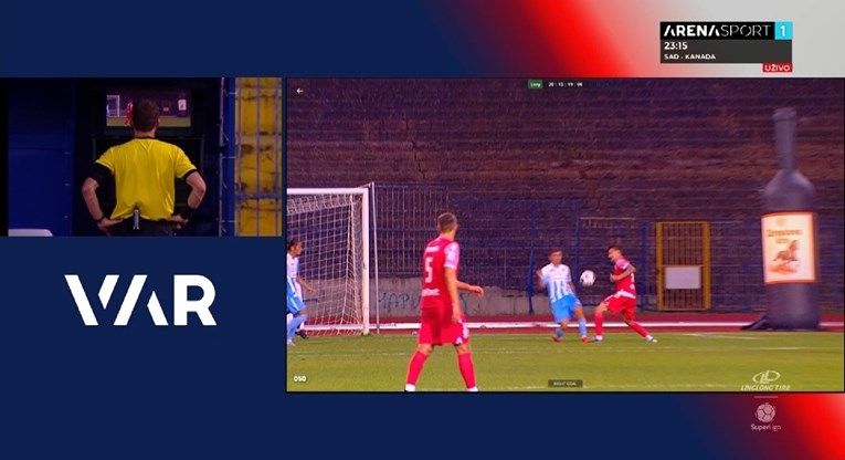 Igrala se 60. minuta kad je jedan od obrambenih igrača Spartaka izbio loptu, ali je pritom nagazio igrača Radničkog. Sudac Minaković najprije je pustio da se igra nastavi, da bi zatim primio signal iz VAR sobe i sam odlučio pogledati snimku.