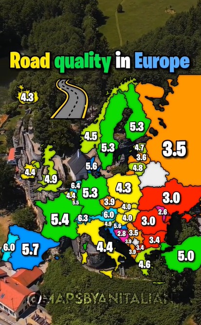 Talijanski stručnjak za kreiranje karata i mapa posvetio se ovaj put analizi europskih cesta, otkrivajući države s najboljim i najlošijim cestovnim infrastrukturama. U njegovoj najnovijoj kartografskoj analizi, Hrvatska se izdvaja kao zvijezda s iznimno visokim ocjenama, dijeleći prestižno društvo s zemljama poput Španjolske, Belgije i Švicarske.