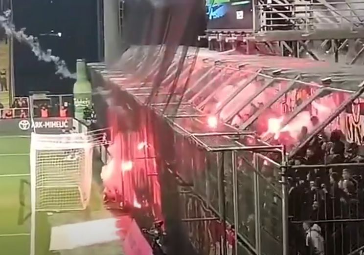 Home Sport (VIDEO) Torcida je pola sata bušila rupe u zaštitnoj mreži pa kroz... Sport (VIDEO) Torcida je pola sata bušila rupe u zaštitnoj mreži pa kroz njih lansirala rakete By m s - March 16, 2025 0 FacebookTwitterPinterestWhatsAppTelegram Torcida u kavezu Nadrealne scene na Rujevici: Torcida je pola sata bušila rupe u zaštitnoj mreži pa kroz njih lansirala signalne rakete.