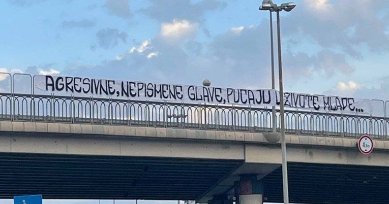 “Agresivne, nepismene glave, pucaju u živote mlade”, stoji na transparentu obješenom na jednom nadvožnjaku, a u samom gradu na drugom transparentu piše: “Policijska brutalnost, hrvatska realnost.”