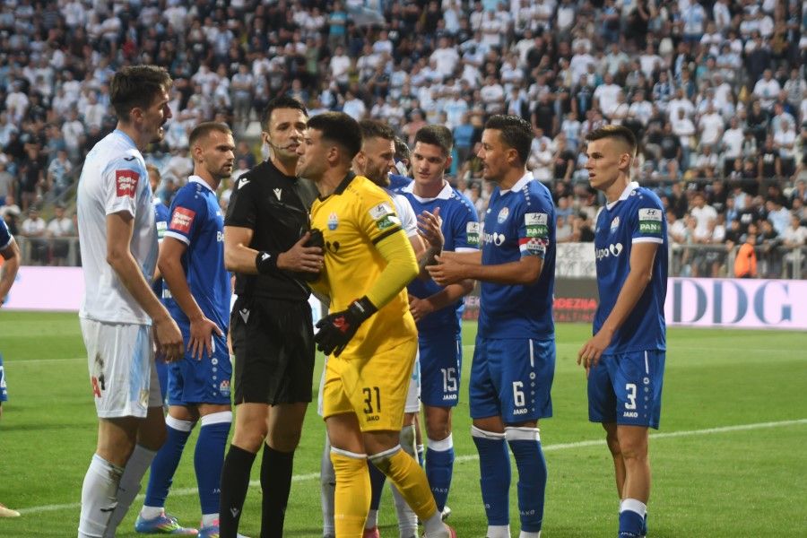 Nogometaši Rijeke pobjedom su započeli put prema obrani naslova prvaka Hrvatske. U utakmici prvog kola SuperSport HNL-a pobijedili su Slaven Belupo na Rujevici rezultatom 2:0. Golove za pobjedu zabili su Šimun Butić i Ante Matej Jurić u 93. i 96. minuti.
