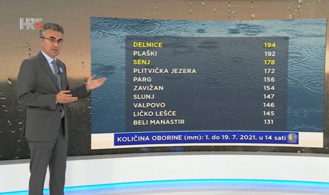 “Kao da želi nadoknaditi sušni lipanj – kiša je i u ponedjeljak povremeno padala u većini hrvatskih krajeva, ali ipak rjeđe i uglavnom u manjim količinama nego prošlih dana. No, u nekim je mjestima već nadmašena prosječna količina za cijeli srpanj. Štoviše, u Delnicama i Senju, primjerice, samo poneka litra nedostaje do novih srpanjskih rekorda, koji se možda dogode u sljedećem tjednu, kada nam se približi nova ciklona i frontalni poremećaji s oceana. Do tada je za kišne i druge ekstreme vrlo mala vjerojatnost jer će atmosferu postupno stabilizirati ovo polje povišenoga tlaka”, navodi HRT-ov meteorolog Zoran Vakula.