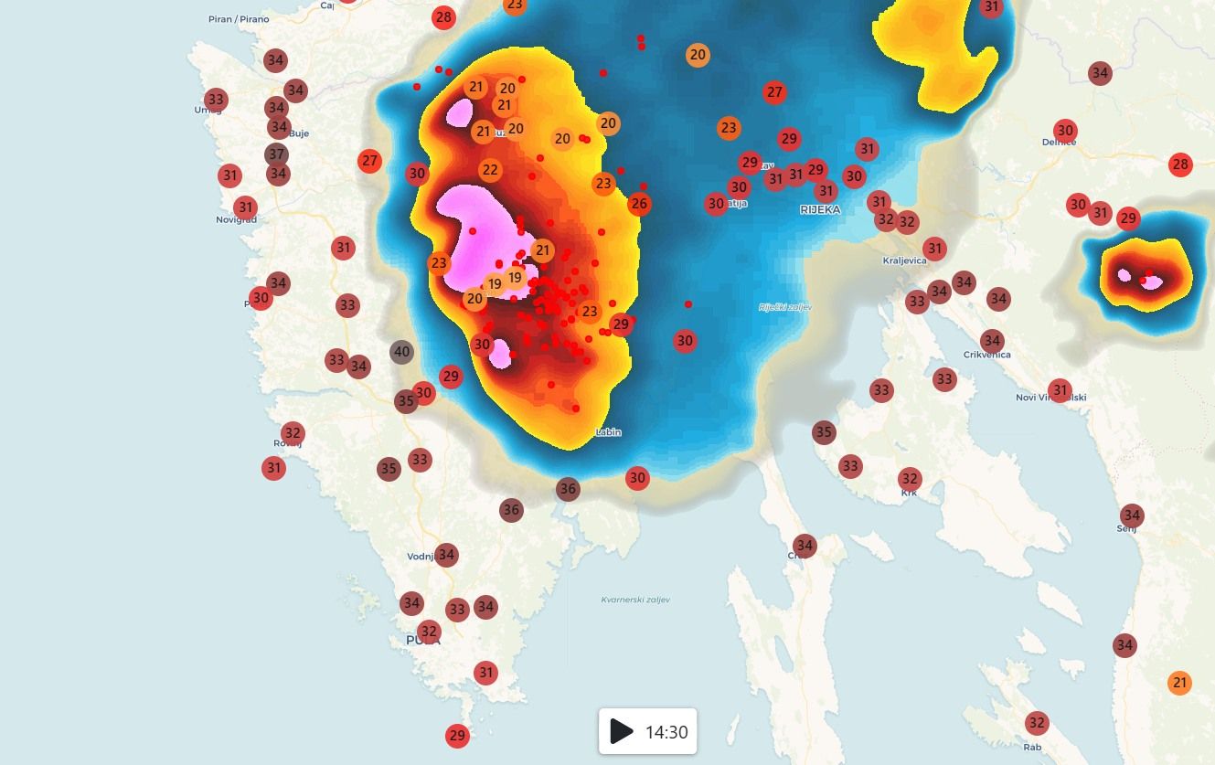 Državni hidrometeorološki zavod (DHMZ) izdao je crveni meteoalarm za srijedu, upozoravajući na opasne vremenske uvjete diljem Hrvatske. Dok se na jugu zemlje alarm odnosi na iznimno visoke temperature, u ostalim dijelovima zemlje, uključujući Istru, alarm je aktiviran zbog prijetnje grmljavinskih oluja. Crveni meteoalarm ostaje na snazi i za četvrtak, što znači da se ovakvi vremenski uvjeti mogu ponoviti.