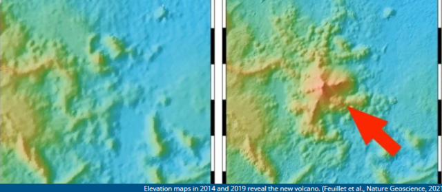 Na morskome dnu uz istočnu obalu otoka Mayottea u Indijskom oceanu uzdiže se novi ogroman vulkan, visok 820 metara, kojeg nije bilo prije potresa.
