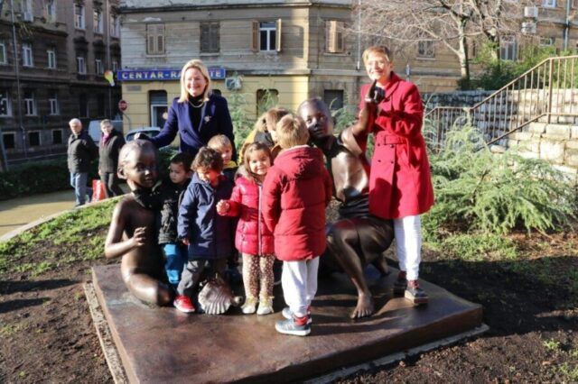 Skulpturu za zajednički uz pomoć djece iz Dječjeg vrtića Vidrice otkrile zamjenica gradonačelnika Grada Rijeke Sandra Krpan i predsjednica Gradskog vijeća Grada Rijeke Ana Trošelj.