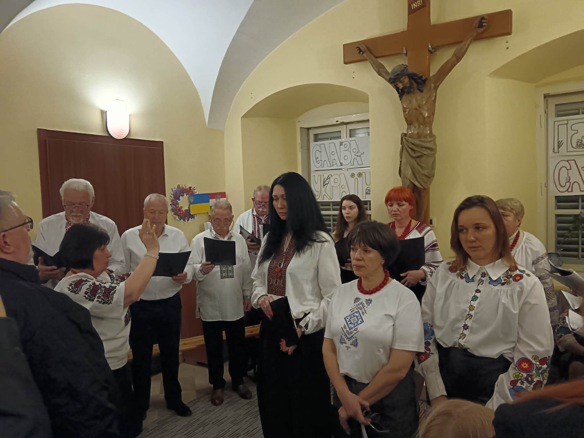 Mješoviti zbor otpjevao je nekoliko tradicionalnih ukrajinskih pjesama kao potvrdu da Ukrajinci nisu klonuli duhom. Na kraju su, uz zajedničku molitvu pod vodstvom grkokatoličkog svećenika, zaželjeli ono najvažnije u ovom trenutku – mir i pobjedu Ukrajine.