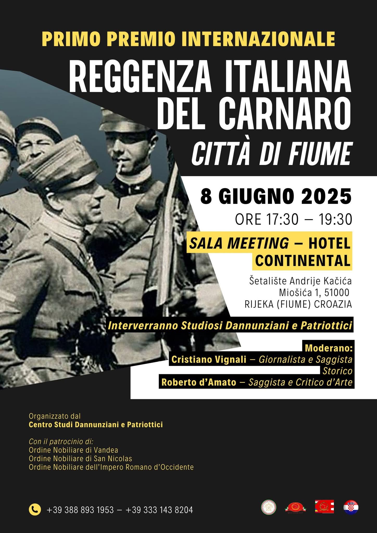 U organizaciji Centro Studi Dannunziani e Patriottici, u Rijeci će se održati Prva međunarodna nagrada Reggenza Italiana del Carnaro – Città di Fiume, posvećena valorizaciji kulture povezane s Gabrieleom D’Annunziom i njegovim revolucionarnim političko-kulturnim projektom iz razdoblja riječkog eksperimenta.