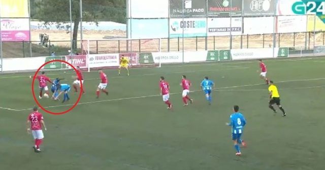 Dječaci Deportiva iz La Corune lijepo su kombinirali, ušli u kazneni prostor, a zatim su dva igrača Deportiva zapela jednom drugom te pala na travnjak. Sudac je ostavio sve u nevjerici i pokazao na bijelu točku dosudivši jedanaesterac za Deportivo.