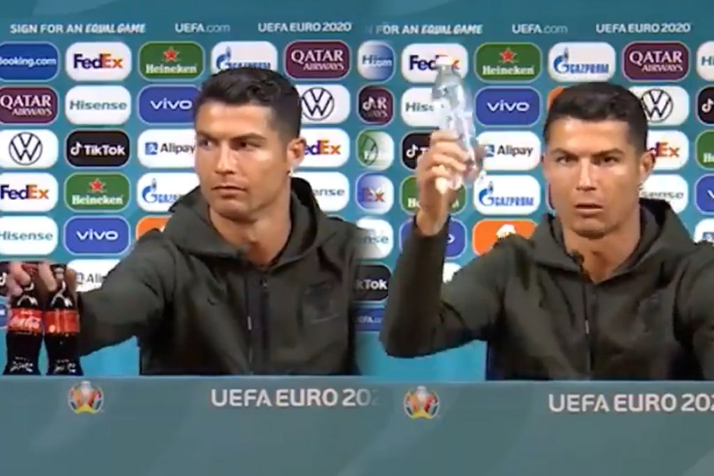 Cola je smetala Ronaldu pa ju je on maknuo iz kadra dok je davao izjavu i pozvao gledatelje da piju vodu koju je onda stavio pred sebe, a nezadovoljstvo Colom pokazao je i Locatelli, koji ju je također pokušao maknuti iz kadra, ali neuspješno.
