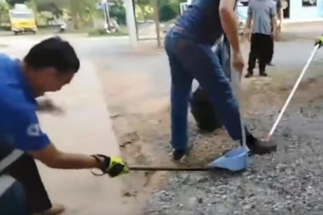Što ne znači da nije smiješno. Dakle, ekipa je pokušavala uhvatiti zmiju, pretpostavljamo da će je skloniti iz naseljenog mjesta u prirodu i sve je išlo po planu. Sve dok u pomoć nije došao treći iz ekipe.