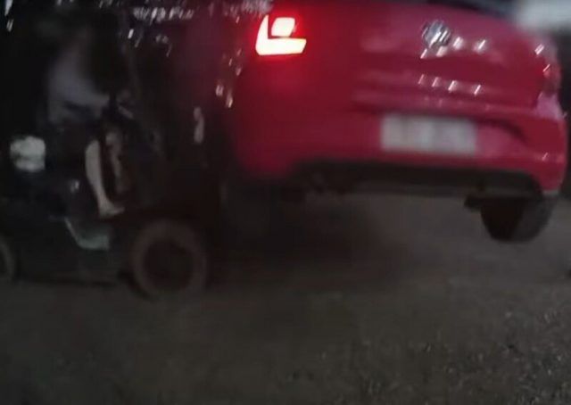 Mills, koji inače iznajmljuje strojeve, imao je svoj viličar parkiran u blizini. Kada žena nije mogla odmah pokrenuti Volkswagen Polo, jednostavno je podigao vozilo s tla. Kako je žena ostala zarobljena unutra, polako je pozvao policiju.