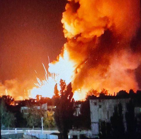 😍💥A Russian ammunition depot has been hit by Ukrainian troops and blew up in the temporarily occupied Nova Kakhovka (Southern Ukraine, Kherson region), Suspilne Kherson reported.