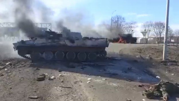 A woman from #Harkiv on the way home casually stopped Russian BTR with a Molotov Cocktail.