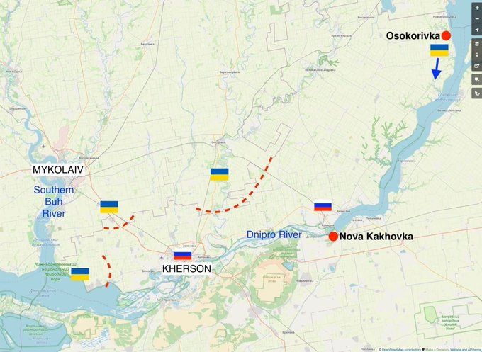 Ukrajinci su oslobodili Osokorovku u pokušaju da se još više približe Hersonu koji je jedini veći grad kojeg su Rusi uspjeli okupirati. Osim Hersonu kojeg ukrajinska vojska stišće s tri strane, sve su bliže i ruskom uporištu Nova Khakovka koje je ključno za opskrbu Krima vodom.