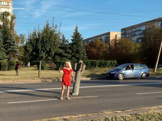 No ono što je uslijedilo je šokiralo mnoge. Ukrajinski novinar Ilija Ponomarenko objavio je fotografiju na kojoj žena u crvenoj haljini stoji ni metar od bombe koja se zabila u cestu i slika se.