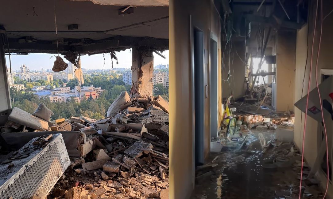 Sudakovljev stan nalazi se u jugoistočnom dijelu kijevskog okruga Svjatošinski. Na snimkama koje je objavio jasno se vide oštećeni gornji katovi zgrade, izgoren i zadimljen interijer te razbijeni prozori. Ulica ispred zgrade prekrivena je krhotinama i urušenim dijelovima konstrukcije, a oštećeni su i parkirani automobili.
