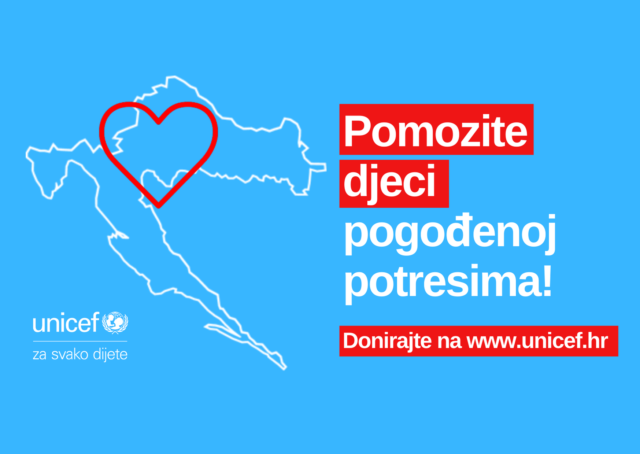 UNICEF je pokrenuo kampanju i poziva sve građane, tvrtke i medije da se uključe i svojim donacijama pomognu djeci i obiteljima na potresima razorenim područjima. Podrška i pomoć svih potrebna je kako bismo zajedno prevladali ove teške izazove te najugroženijoj djeci i obiteljima pružili podršku i sigurnost u nadolazećem razdoblju.