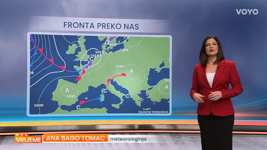 Kako se približava novi frontalni sustav sa zapada, uz ciklonu u Jadranu, vrijeme u Hrvatskoj se značajno mijenja. Već sutra ujutro očekujemo povećanu naoblaku na sjevernom Jadranu, u gorskoj Hrvatskoj i na zapadu unutrašnjosti, uz povremenu kišu.