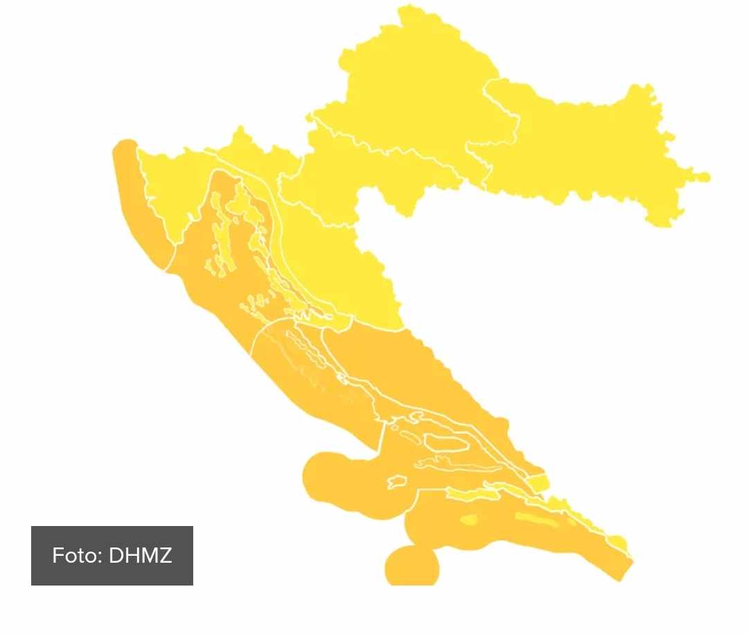 Duž cijele obale, upozorenje je na jako i vrlo jako jugo, a prema večeri će vjetar okretati na sjeverozapadnjak. U sjevernom Jadranu i gorju očekuje se pretežno oblačno vrijeme s kišom, lokalno izraženim pljuskovima praćenim grmljavinom. Temperature će biti oko 20 Celzija, no očekuje se osjetan pad temperature s dolaskom hladne fronte.