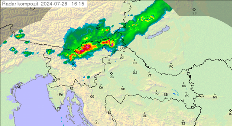 Pljuskovi se sporo približavaju sa sjeverozapada. Mogući su olujni udari vjetra, tuča te obilnija kiša, dodaju.
