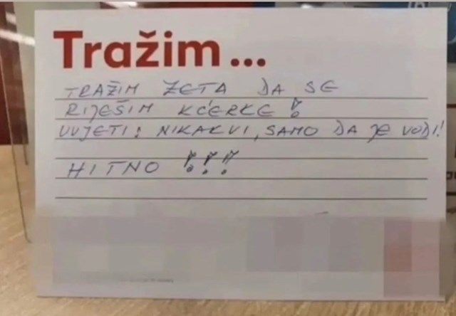 Home Najnovije Urnebesni oglas fotkan u Splitu trese region, pogledajte uvjete pod kojima punica... Najnovije Urnebesni oglas fotkan u Splitu trese region, pogledajte uvjete pod kojima punica traži zeta! By dš - December 5, 2024 0 FacebookTwitterPinterestWhatsAppTelegram Ljudi moji, je li ovo moguće! Ako se stvarno bude držala dogovorenih uvjeta, Hrvatska bi mogla zabilježiti prvi slučaj ljubavi između punice i zeta u povijesti! 😂 50e63a37 622c 467a 80ce e1760e6017de
