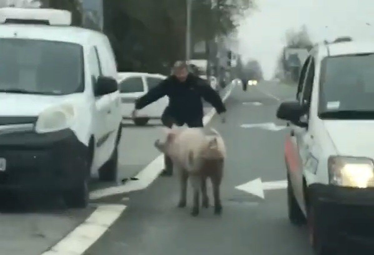 Društvenim mrežama kruži snimka svinje, koja je očito iskliznula iz nečijeg automobila i završila na ulici u Beogradu.