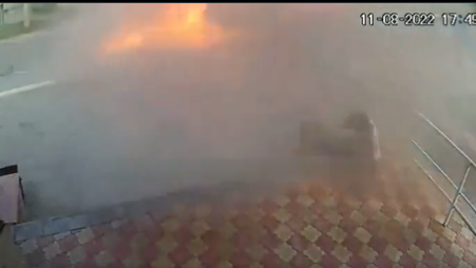 U javnost su puštene snimke nadzorne kamere koje jasno prikazuju trenutak u kojem je automobil Askjara Laiševa buknuo prolazeći ulicom Ševčenko u okupiranom Starobilsku.
