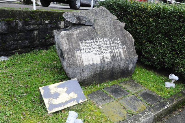 Ploča postavljena 2003. godine od strane Udruženja riječkih esula Rima i Padove, koja se nalazi u neposrednoj blizini spomen-kamena s porukom “Fiumanima svake vjere i nacije koji su nestali u miru i ratu i koji zbog totalitarnog nasilja nisu imali kršćansku sahranu, ti prolazniče stani i pomoli se za njih…” je oštećena od za sada nepoznatih osobe. Spomen obilježje se nalazi u blizini kripte kod crkve S. Romula i Svih svetih na Kozali. Tekst na hrvatskom jeziku učinjen je nečitkim. Novinari >La voce del popola su od uprave Groblja Kozala zatražili pojašnjenje, ali odgovoreno im je „da je ploča izvan granica groblja i da stoga ne spada u njihovu nadležnost“.