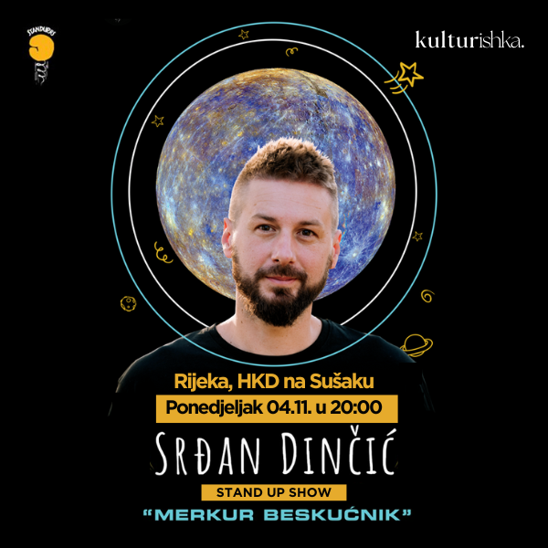 Večeras u Rijeku po drugi put ove godine stiže „Merkur beskućnik”, Dinčićev stand up specijal koji posljednjih godinu dana intenzivno zasmijava ljude širom regije. Početak programa je u 20.00 u Hrvatskom kulturnom domu na Sušaku, a karte možete kupiti putem sustava mojekarte.hr ili na blagajni HKD-a sat vremena pre početka.