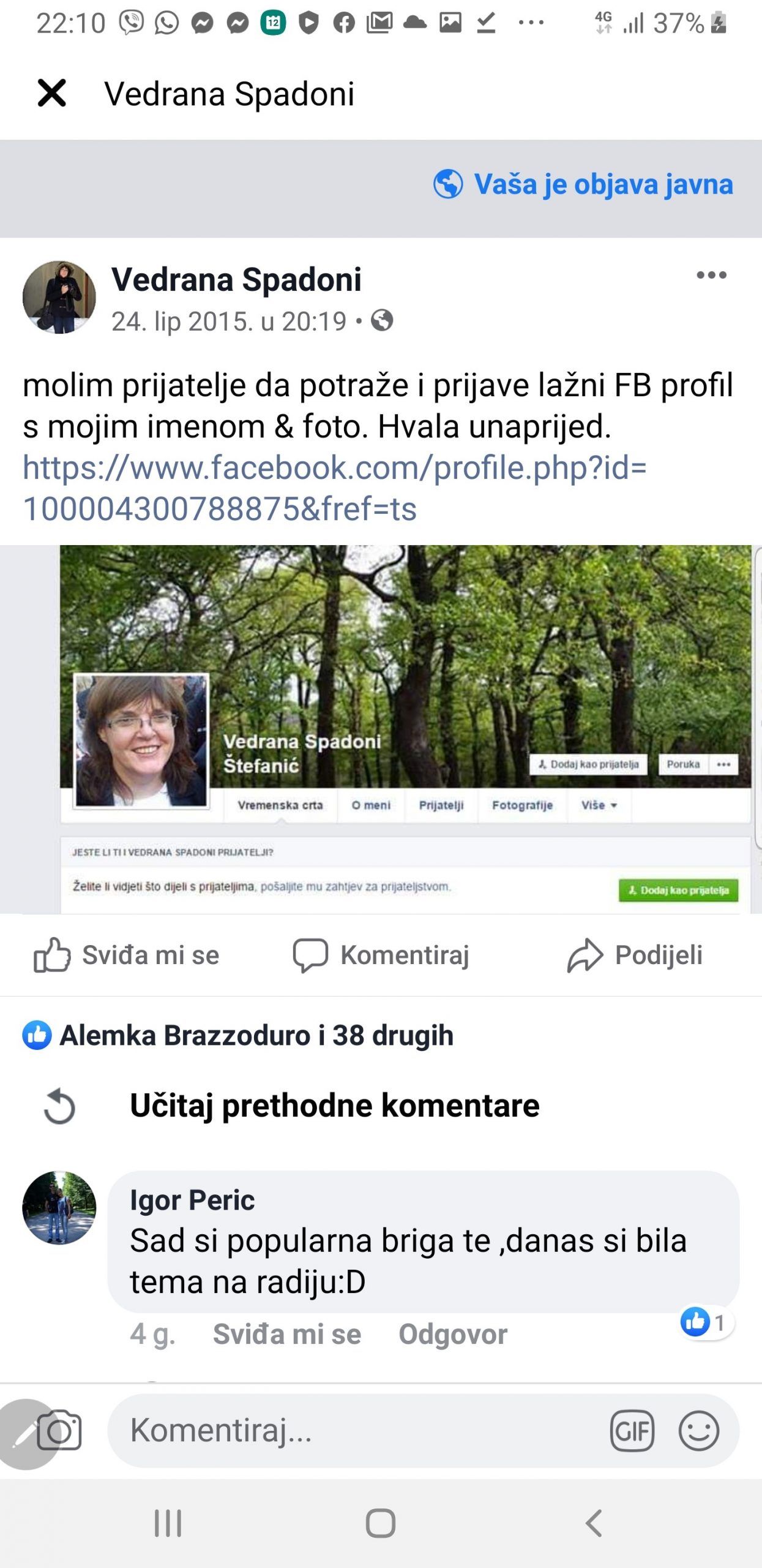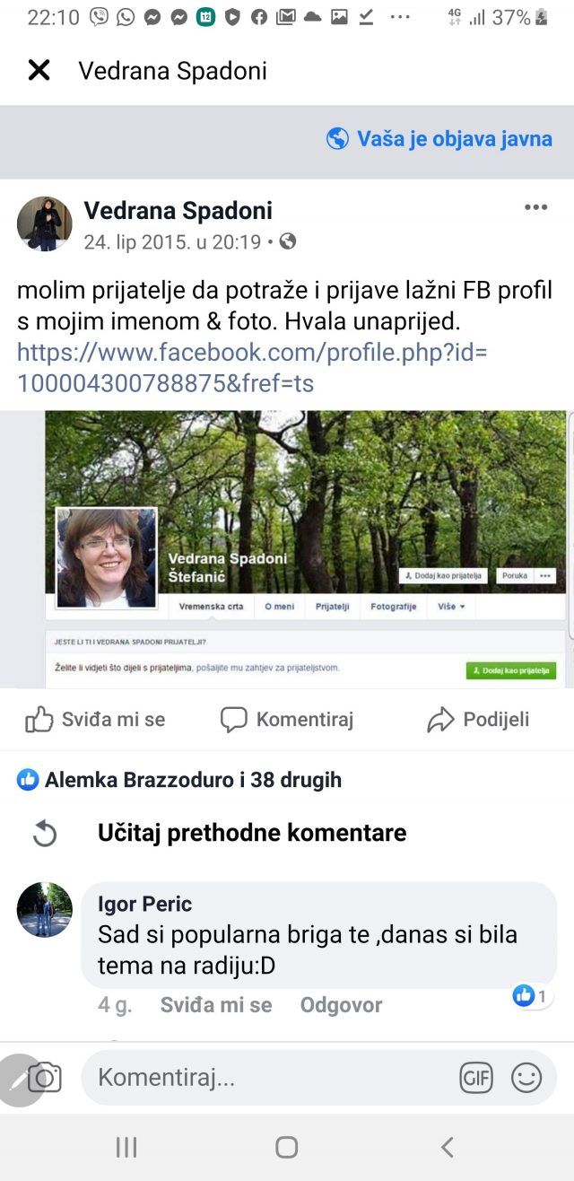 ‘Umjesto ispravke, objavili ste objave koje je nepoznati počinitelj objavljivao pod mojim imenom prije nekoliko godina. Zahtjevam da iste uklonite uz ispriku’, piše Spadoni uz priloženi screenshot koji također objavljujemo.