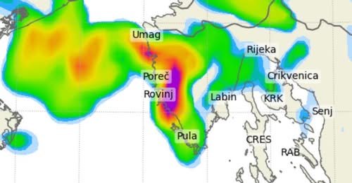 Tada se očekuju izraženi pljuskovi s grmljavinom, osobito uz obalu, a vjetar će se pojačavati. Bura i tramontana će u utorak dosezati jače udare, dok će unutrašnjost biti pod utjecajem sjevernog i sjeveroistočnog vjetra.