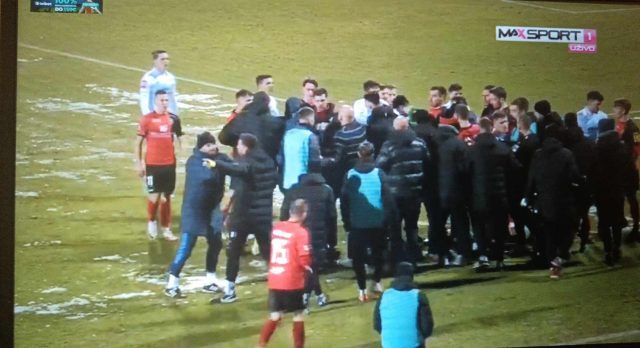 Odmah iza dranatične utakmice Gorice i Rijeke koju su gosti dobili rezultatom 2:3 došlo je do velike gužve u kojoj je sudjelovao veći dio obje momčadi koje je na kraju razdvajao trener Rijeke Željko Sopić.