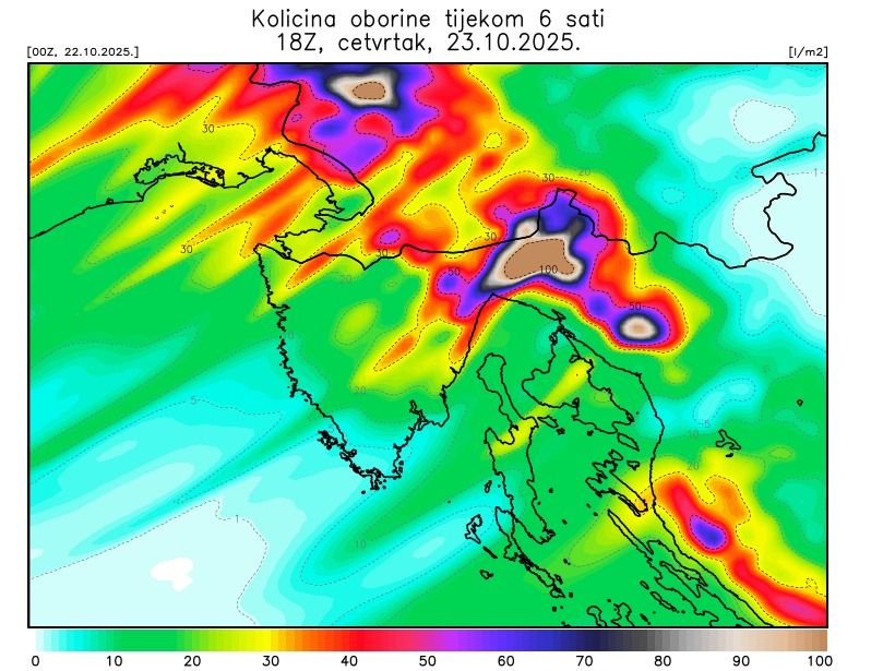 Prema podacima DHMZ-a, riječko i podvelebitsko područje bit će među najpogođenijima u Hrvatskoj, s očekivanih 70 do 110 mm kiše, što bi moglo uzrokovati urbane i bujične poplave.