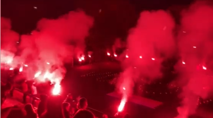 Oko terena i na tribinama upaljeno je više od 60 baklji i nekoliko dimnih kutija što je stvorilo dostojanstvenu i impresivnu sliku.