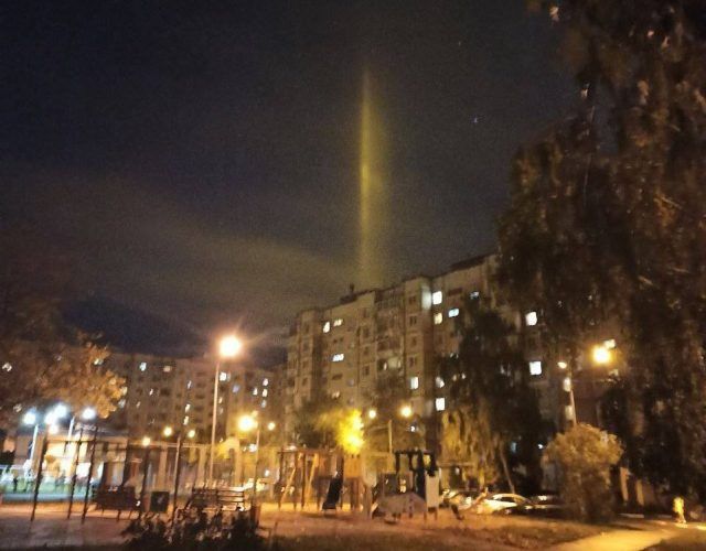 Pojavile su se fotografije i snimke na Twitteru na kojima se mogu vidjeti najmanje dva neobična ravna stupa žute svjetlosti koja se uzdižu iznad grada. Očevici tvrde da su vidjeli i tri stupa, a stanovnici nagađaju da bi to mogli biti reflektori ili prirodni fenomen. Neki misle da je svjetlost nastala zbog testiranja novog laserskog protusatelitskog oružja.
