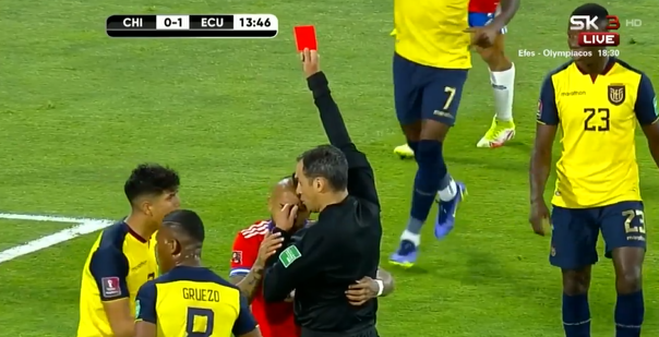 Nogometaši Čilea su u 14. kolu južnoameričkih kvalifikacija za plasman na SP 2022. godine ugostili Ekvador. Utakmicu je obilježio divljački prekršaj Artura Vidala u 13. minuti, a Čileanci su na kraju izgubili 2:0