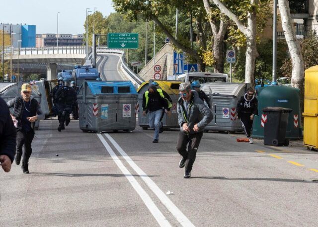 Više stotina lučkih radnika blokiralo je jedan od glavnih ulaza u najveću talijansku komercijalnu luku, što je pak izazvalo snažnu reakciju talijanske interventne policije.