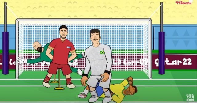 Autori aludiraju na to da su vratar i stoper Srbije ostali bez ikakve reakcije dok je Richarlison šutirao. Srbija sutra od 11 sati igra protiv Kameruna, a od 17 sati na isti dan Brazil igra protiv Švicarske.
