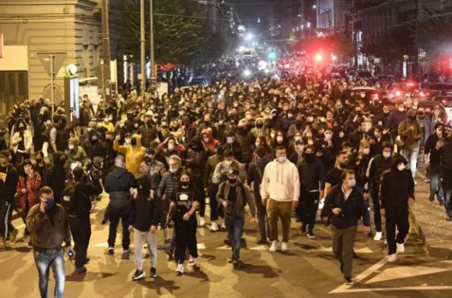 Stotine ljudi izašlo je na ulice demonstrirajući zbog skorog zaključavanja kojim je prijetio guverner Campanije Vincenzo De Luca zbog brzog porasta broja novih slučajeva covid-19.