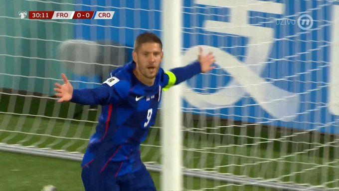 Hrvatska je povela na Farskim otocima u 31. minuti! Jakić je zavrtio protivnika na desnom boku i ubacio u peterac domaćih, odakle je Budimir prenio loptu glavom za Kramarića koji iz blizine zabija za 0:1.