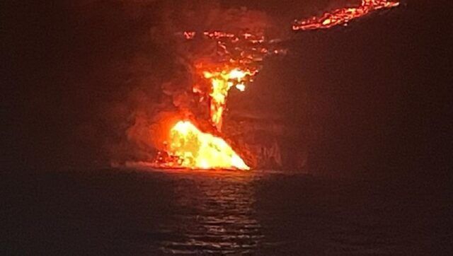 Deset dana nakon erupcije vulkana lava je u 23 sata po lokalnom vremenu sporo počela ulaziti u more na obali Tazacorte. Kamere lokalne televizije, postavljene na brod na moru, prikazale su kako kamenje i vatra ulaze u vodu, no zbog noćne tame nije se vidjela para nastala miješanjem kipuće lave i hladnoga mora.