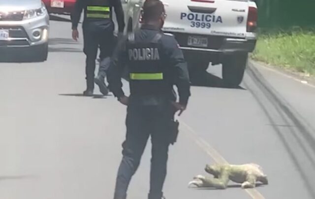 Životinja je bila toliko spora da je lokalna policija morala zaustaviti promet i strpljivo pričekati da se medeni ljenivac polako prebaci s jedne strane ceste na drugu.