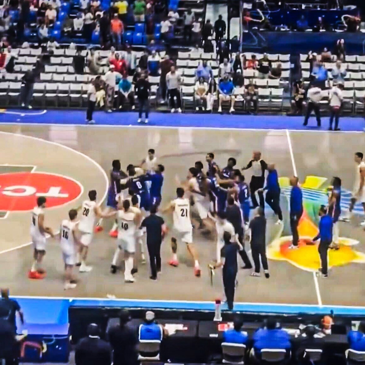 Neposredno po završetku utakmice došlo je do naguravanja među igračima, koje je ubrzo preraslo u otvoreni fizički sukob. Šake su počele letjeti na sve strane, a scena je na trenutke podsjećala više na boksački ring nego na košarkaško prvenstvo.