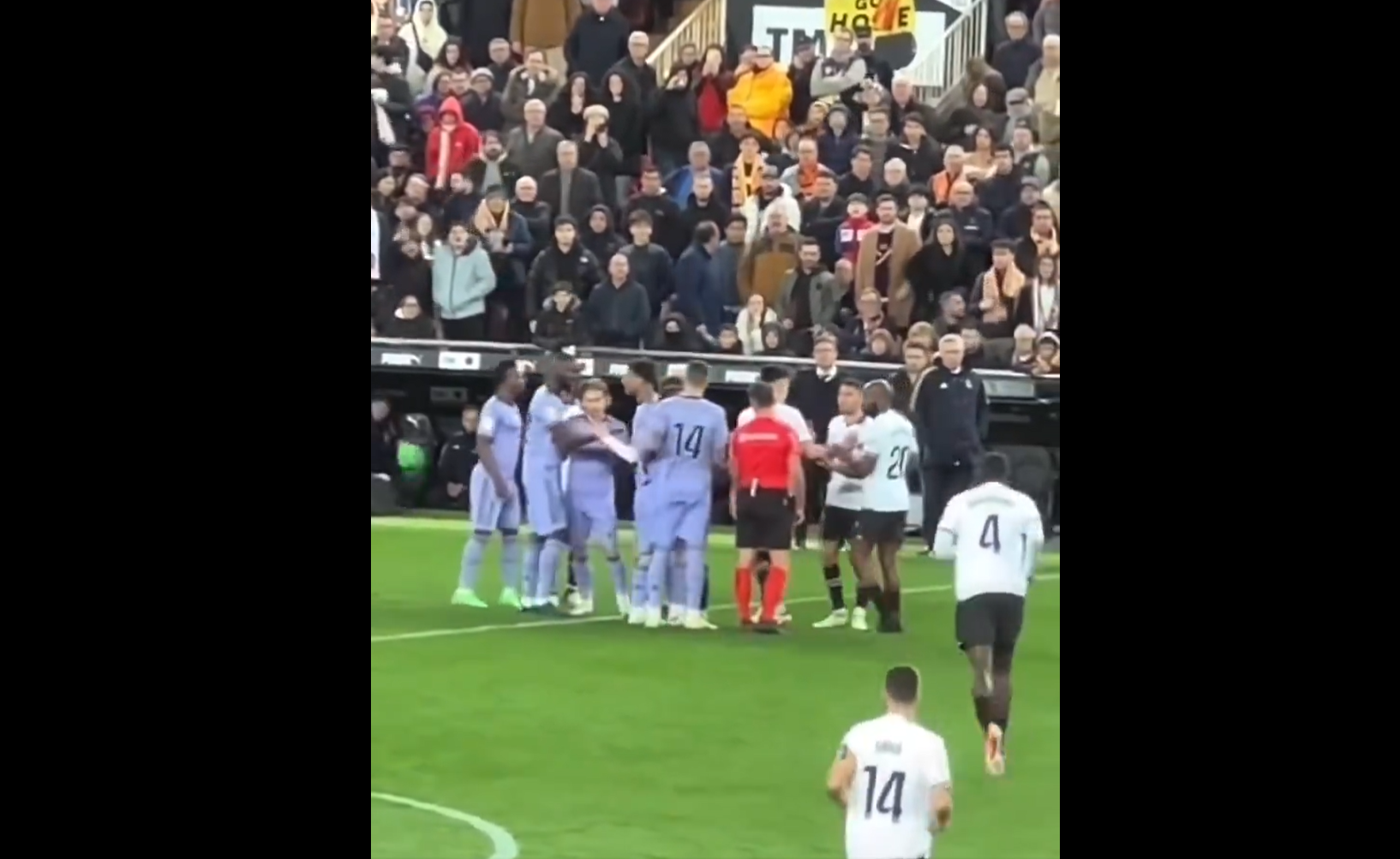 Incident s Bellinghamom, kao i ponašanje Luke Modrića, izazvali su polemike. Snimka koja se širi društvenim mrežama prikazuje engleskog veznjaka kako smiruje situaciju između Valencijinog igrača i strijelca Reala, Viniciusa. No, Modrićev potez nije bio tako smiren – došao je do suparničkog igrača i odgurnuo ga.