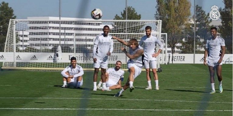 Luka Modrić briljirao je na zadnjem Realovom treningu pred El Clasico na Bernabeuu danas u 16:15. Real je na društvenim mrežama objavio njegovu velemajstorsku minijaturu. Primio je loptu na 20-ak metara od gola leđima okrenut mreži, vješto žonglirao s njom i onda iz okreta i bez gledanja opalio prema vratima prije nego što je lopta pala na tlo.